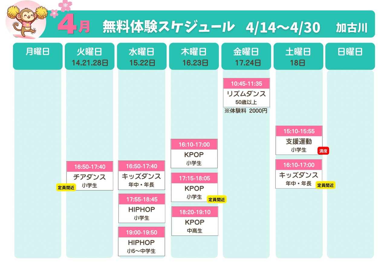 🌼チア・KPOP・HIPHOPの対象は小学生以上